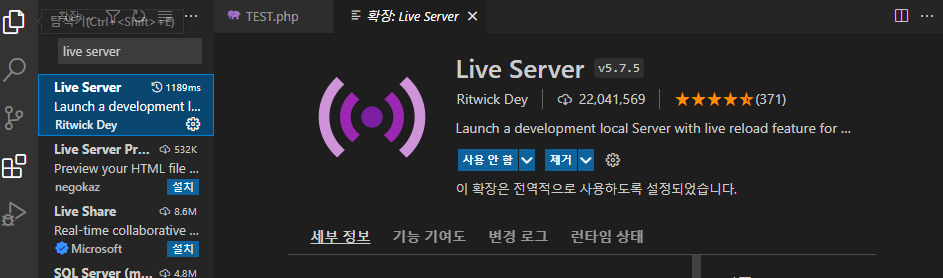 # Live Server Web Extension 설치