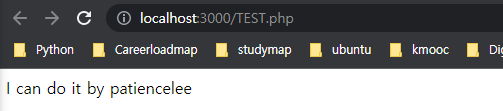 그러면 위에서 설정한 경로의 PHP 파일이 웹 브라우저로 열리는 것을 확인하실 수 있습니다.