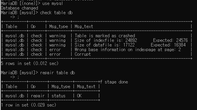 // 2. mysql db로 이동(여기로 이동안하시면 아래 명령어 실행 못해요!)