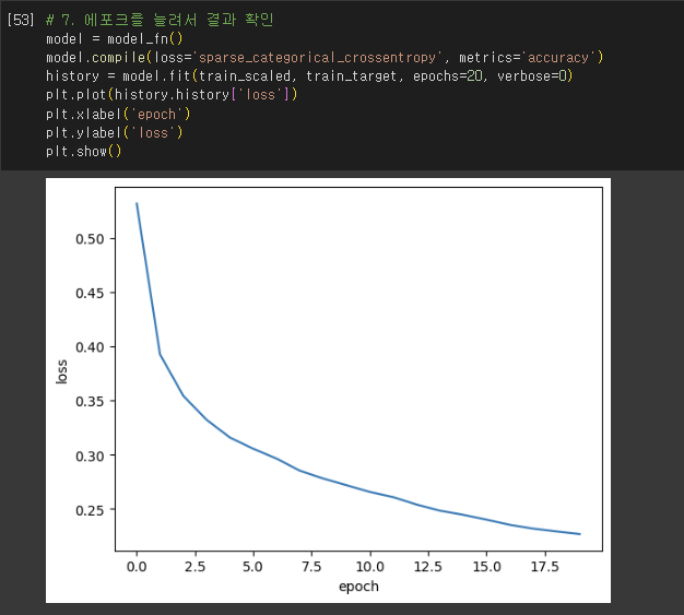 - 모델이 훈련할 때 기본으로 에포크마다 손실 값 출력