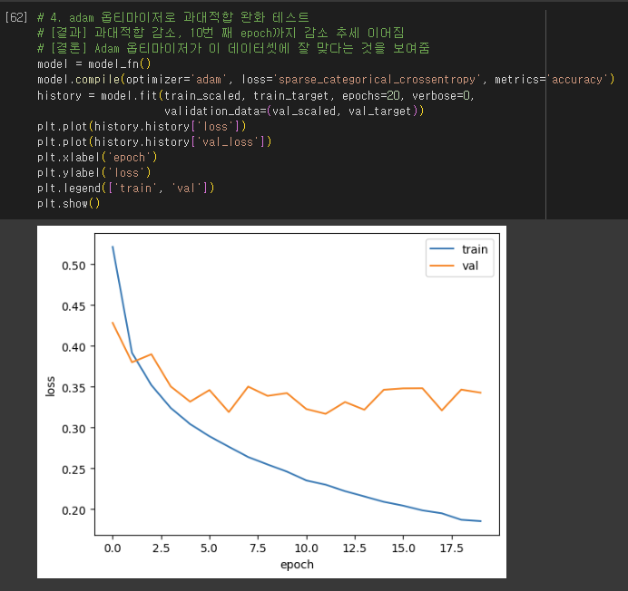 - 정답: 4번 / model.fit(…, validation_data = (val_input, val_target))