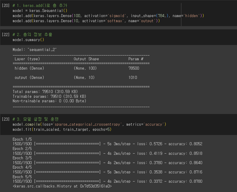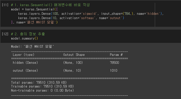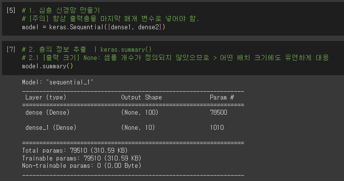 - Sequential: 케라스에서 신경망 모델을 만드는 클래스