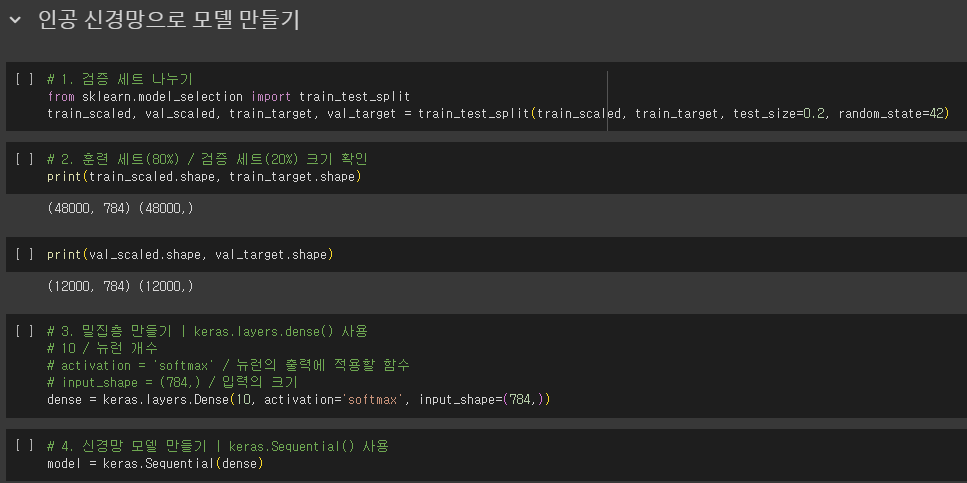 인공 신경망으로 모델 만들기
