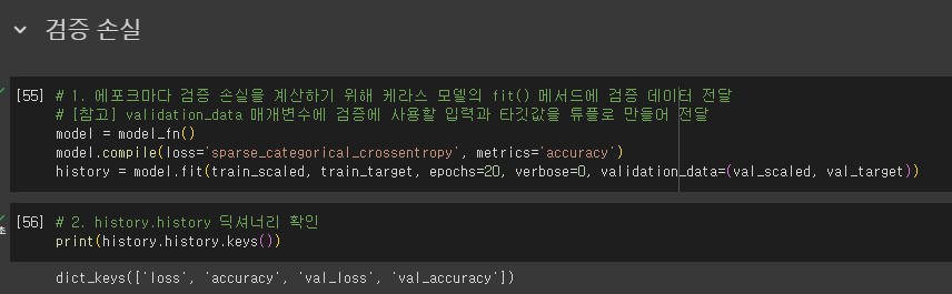 - 케라스 모델의 fit() 메서드에 검증 데이터 전달