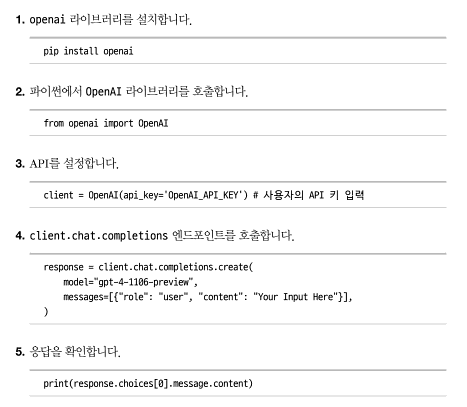 이 책 ’‘GPT-4을 활용한 인공지능 앱 개발’을 한 마디로 표현하면 '인공지능에 대해 어느 정도 이해와 학습 수준을 갖고 있는 사람들에게 적합한 GPT-4 입문서’ 라고 할 수 있겠습니다. 실습을 하는 데 있어 비용적인 측면이 들어가므로, 이러한 점도 모두 고려하여 책을 선택할 필요가 있습니다. 실습을 빼놓고만 보더라도 GPT의 역사부터 시작해서 LLM의 성능을 극대화 시킬 수 있는 다양한 튜닝, 프롬프트 엔지니어링 방법도 담고 있어 그 자체만으로도 분명 좋은 책입니다. GPT-4와 ChatGPT로 애플리케이션을 한 번 만들어보고 싶으신 분이라면 참고서적으로 읽어보시길 바랍니다.