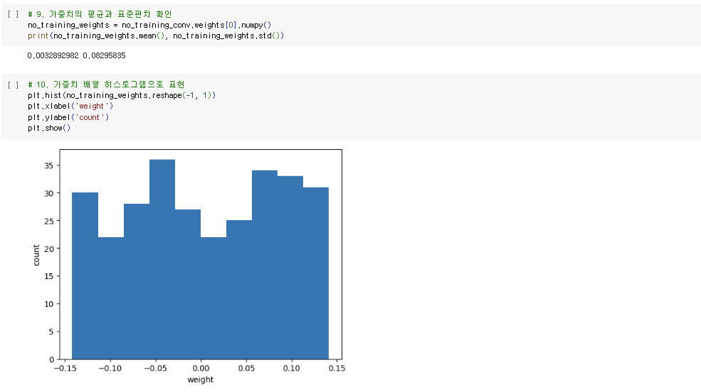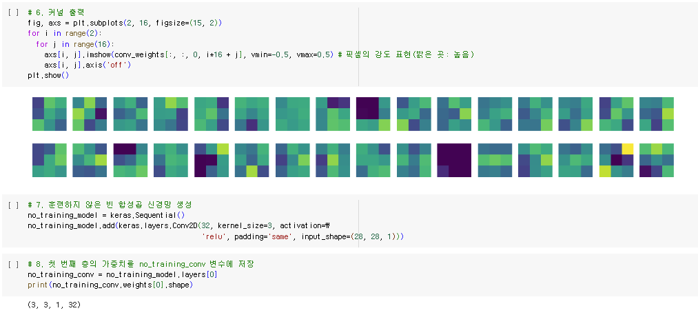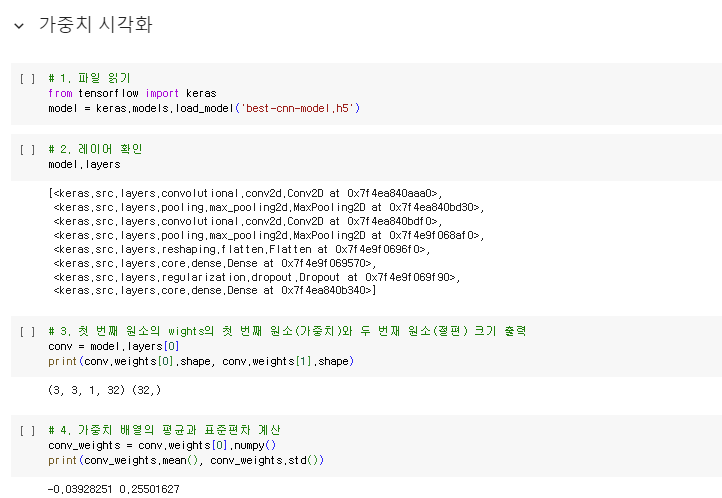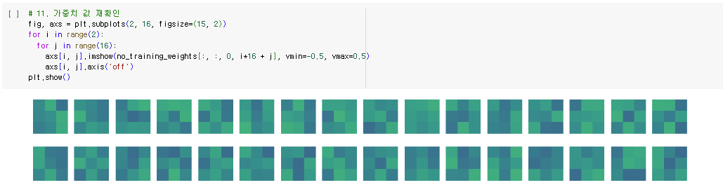 - 가중치 시각화: 합성곱 층의 가중치를 이미지로 출력하는 것