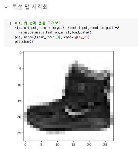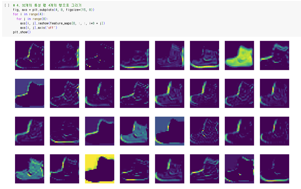 - 특성 맵 시각화: 합성곱 층의 활성화 출력을 이미지로 그리는 것