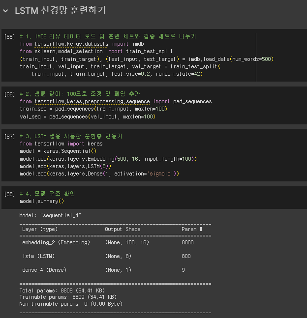 09-3 LSTM과 GRU 셀 ▶ 순환 신경망의 중요 기술을 사용해 모델 만들어 보기