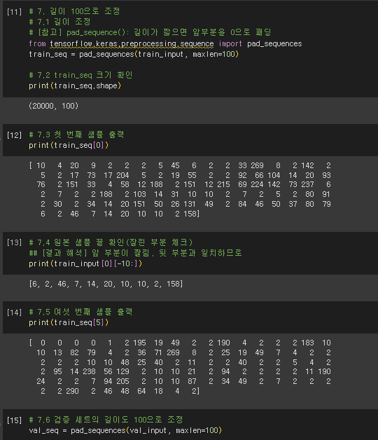 - 이 값보다 작은 시퀀스는 패딩됨. (0으로)