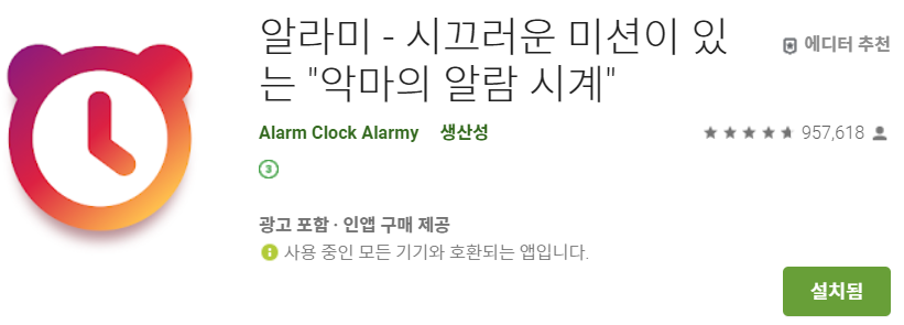 핸드폰에 기본으로 설치된 알람으로는 도저히 아침에 일어나기 힘드신 분들에게 이 어플을 추천드립니다.