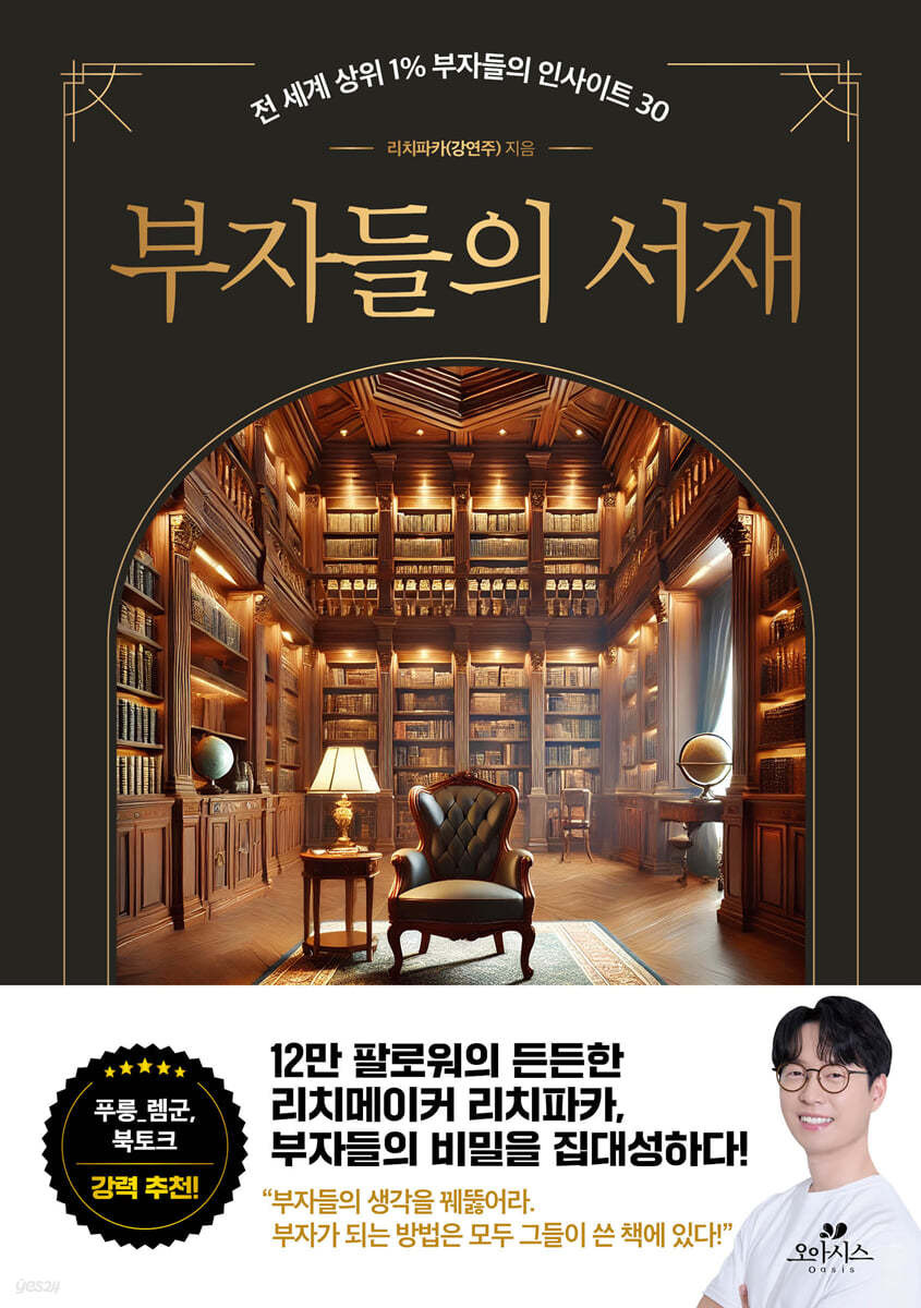 경제적 자유와 성공에 대한 갈망은 누구에게나 있지만, 실제로 그것을 이루는 사람은 드물다. 왜 이런 차이가 생길까? 『부자들의 서재』의 저자 리치파카는 그 핵심적인 차이가 '책을 읽고 행동하는 것'에 있다고 말한다. 무수저 흙수저 출신으로 가난한 환경에서 성장했던 저자는 부와 성공에 관한 책을 매년 100권 이상 읽고 실천하면서 단 3년 만에 아파트 두 채를 보유한 억대 자산가로 거듭났다. 그의 성공 비결은 단순했다. 성공한 사람들이 남긴 지혜를 책을 통해 배우고, 그것을 즉시 행동으로 옮기는 것이었다.