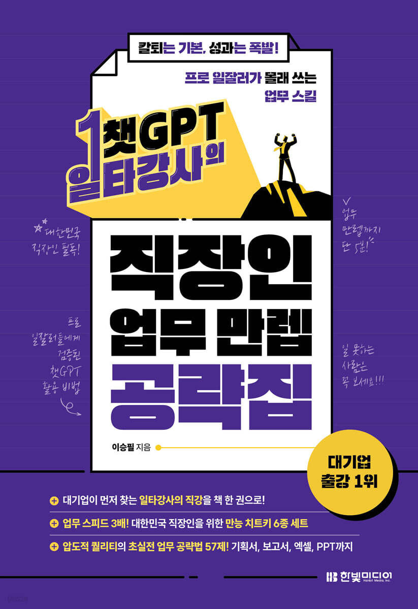 '챗GPT 일타강사의 직장인 업무 만렙 공략집'은 단순한 AI 사용법 안내서가 아닌, 직장인의 일상을 혁신적으로 바꿀 수 있는 실전 업무 전략서입니다. 이승필 저자는 400회 이상의 기업 강연 경험과 인공지능 스타트업에서의 실무 경험을 바탕으로, 대한민국 직장인들이 가장 필요로 하는 실용적인 챗GPT 활용법을 이 한 권에 집약했습니다.