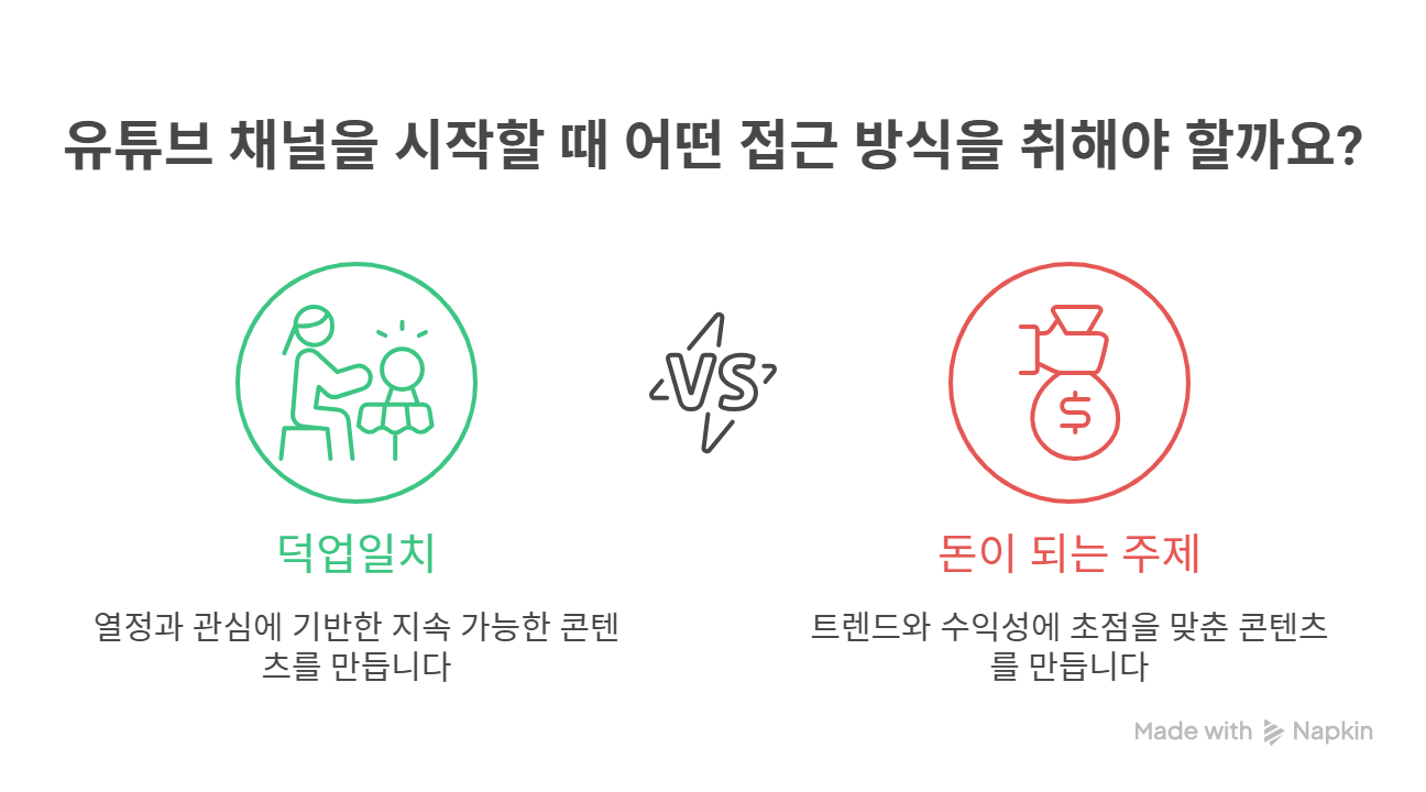 처음에 가장 인상 깊었던 건 주제 선정에 대한 부분이었다. 저자는 무작정 돈이 되는 주제를 찾으라고 하지 않는다. 대신 '덕업일치'라는 개념을 강조한다. 자신이 진짜 좋아하고 관심 있는 분야에서 시작해야 오래갈 수 있다는 얘기다. 당연해 보이지만 막상 유튜브를 시작하려고 하면 "뭐가 잘 될까?"만 생각하게 되는데, 이런 조언이 필요하다는 생각이 들었다. 취미 생활을 영상으로 만들거나, 좋아하는 것도 잘하는 것도 없다면 AI 음성이나 ASMR 같은 걸로도 시작할 수 있다고 한다.