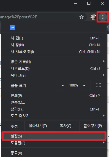 해결책을 찾다보니 크롬에서 설정을 바꿔주니 해결이 되었습니다.