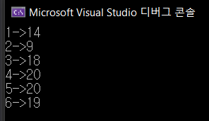 printf("1->%d\n2->%d\n3->%d\n4->%d\n5->%d\n6->%d\n",