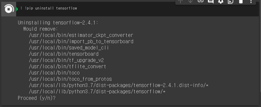 삭제가 완료되면 위와 같이 Successfully uninstalled tensorflow-2.X(본인 버전)이 출력됩니다.