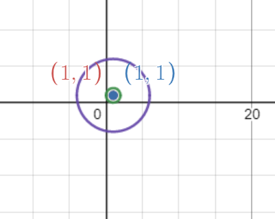 > 기본적으로, 중심점이 (x1, y1) 그리고 반지름 r1의 원의 방정식 공식은 (x-x1)2 + (y-y1)2=r12