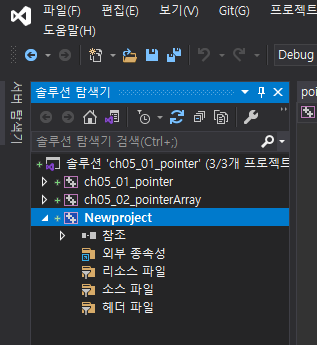 그러면 좌측 상단 솔루션 탐색기에 새로운 프로젝트가 추가되는 것을 보실 수 있습니다.