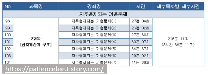자주출제되는 기출문제: 총 33강 / 총 강의시간: 17시간 02분 14초