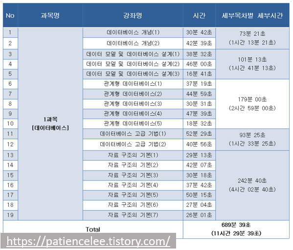 정보처리산업기사_이기적in / 영진닷컴 챕터별 무료강의시간 정리_필기