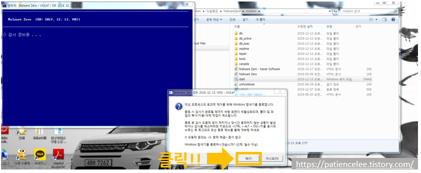 3-7. 효과적인 제거를 위하여 탐색기를 종료한다는 것도 예를 클릭해주세요.
