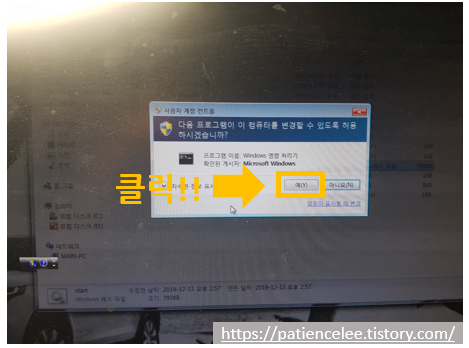 3-6. 도구 초기화가 끝나면, 진행에 관련하여 창이 하나 나와요. 예를 클릭해주세요.